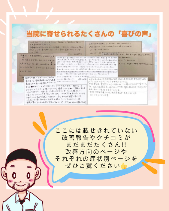 当院にはあなたと同じような悩みを抱えていた多くの方が来院され、改善を実感されています。