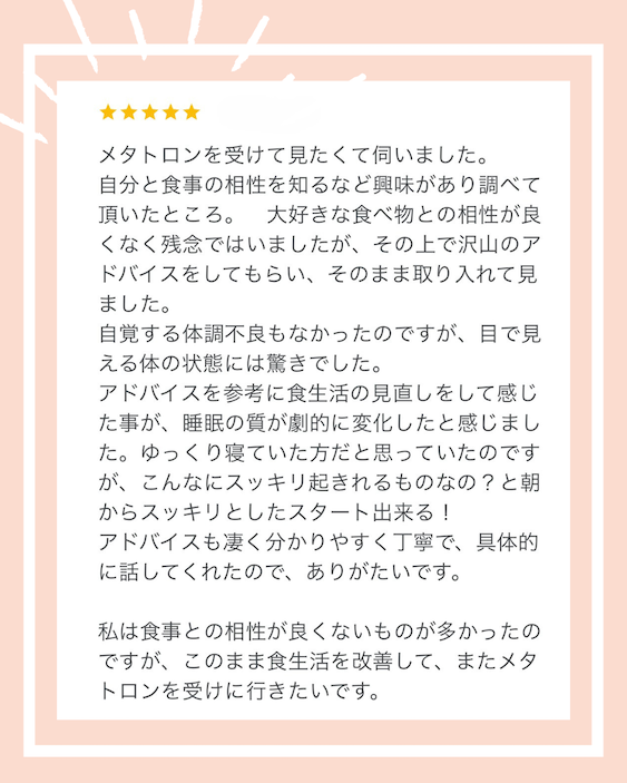 当院では、分子栄養学(オーソモレキュラー)、アーユルヴェーダ、量子医学など、多角的な分析を行い最善の食事法をご提案いたします。