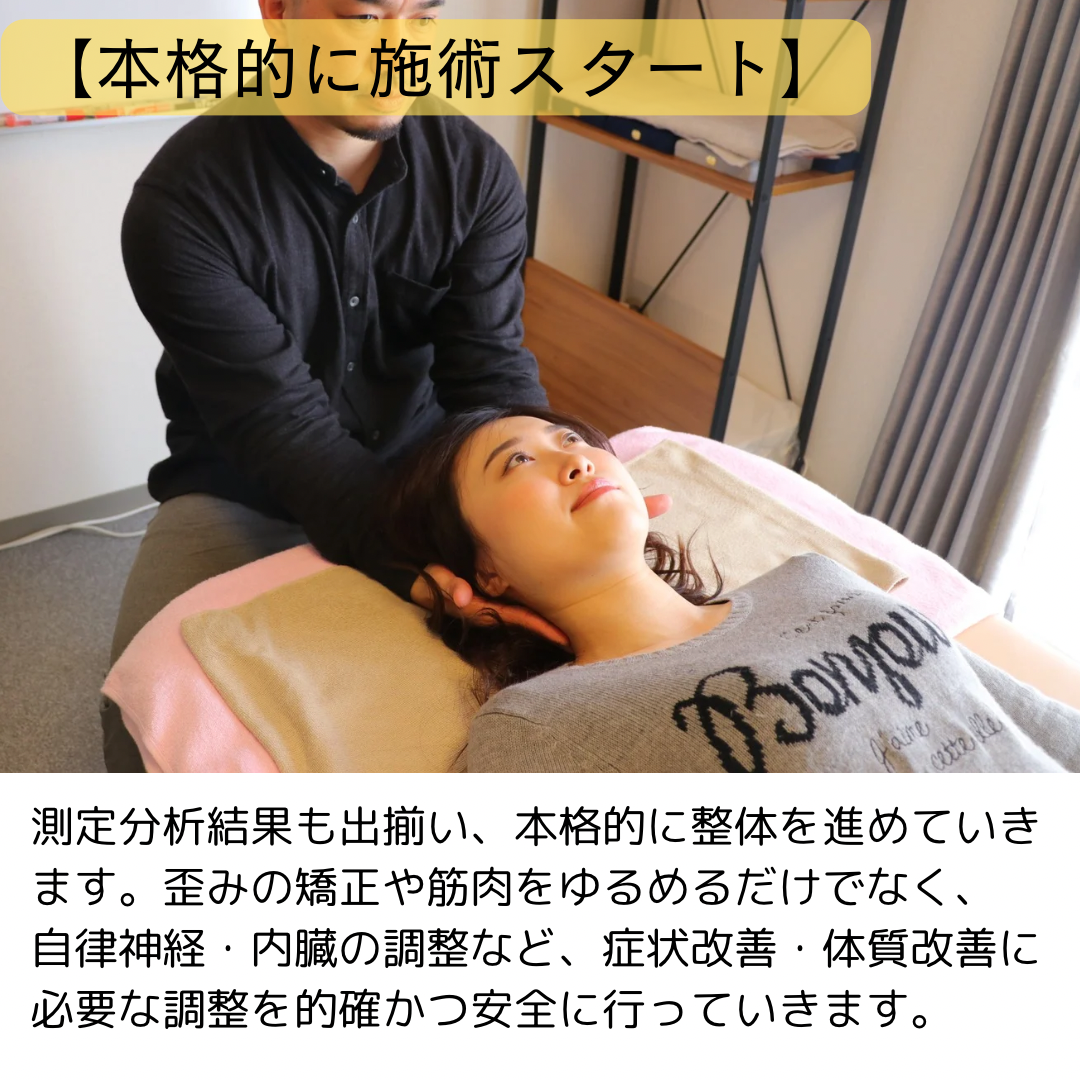 流れ作業のように、誰にでも同じ施術をする訳ではなく、豊富な臨床経験と分析結果をもとに、あなたに一番適した施術を行います。