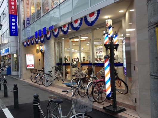 いかりスーパーを越えてさらに進むと、右手に理髪館という散髪屋さん、その隣にローソンが出てきます。