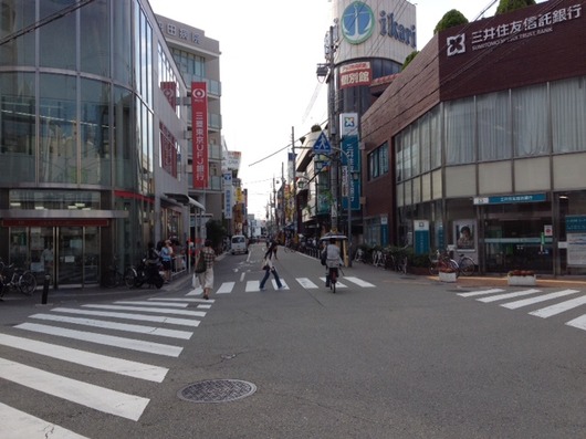 進んでいくと、UFJ銀行、バス乗り場、池田病院が見えてきます。さらに真っすぐ進んでください。