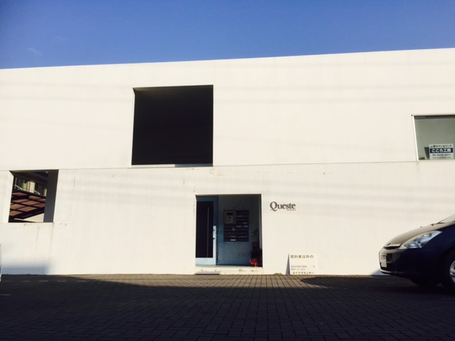 その正面に「Queste」と書かれた白い壁の少し変わった建物の104号室が当院です。
