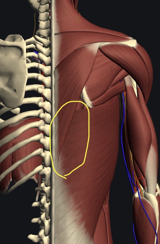 - 背中の一部には2つの重要な筋肉(広背筋・僧帽筋)が重なっている